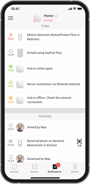 Hemos rediseñado la app para que la experiencia de usuario final sea integral y más cómoda, sin interrumpir el proceso habitual de gestión del sistema. Iconos grandes, fuentes contrastadas, codificación de colores, menú especial para dispositivos de automatización: aproveche de cada elemento al gestionar un sistema Aitaria Seguridad.